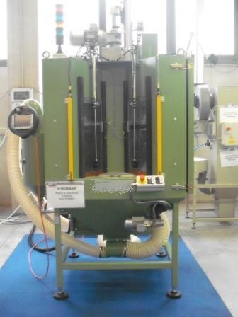 Cabina di pallinatura in pressione, l'impianto è particolarmente idoneo alla pulizia di matrici, punzoni, utensili, alla rifinitura e pulizia di acciai inossidabili, particolari ossidati, particolari trattati termicamente,
